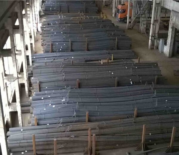 Skanveir magnetic beam lifts efficiently 12 m long rebar bundles at steel distributor, increasing warehouse throughput and handling speed. One or two bundles per lift, weighing max. 7,5 tons, are unloaded from train wagons to storage or loaded from storage to trucks for delivery
